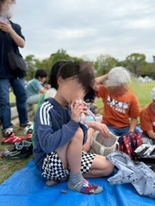 気候も良くなってきたので、みんなで外でお昼ご飯を食べました🍱