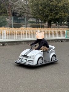 バッテリーカーは一人乗りですが、上手に運転することが出来ていました🚙
