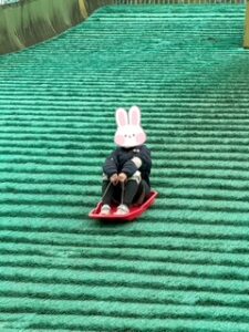 芝滑りは高いところから滑りますが、怖がる様子を見せることなく楽しそうに滑っていました!
